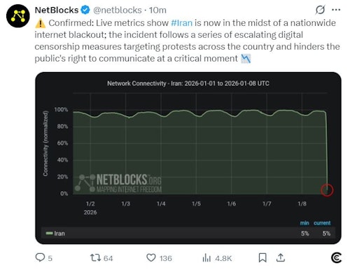 این گزارشها در حالی منتشر میشود که بنا به اعلام نتبلاکس دسترسی به اینترنت در داخل ایران از پنجشنبه شب به طور کامل قطع شده است.