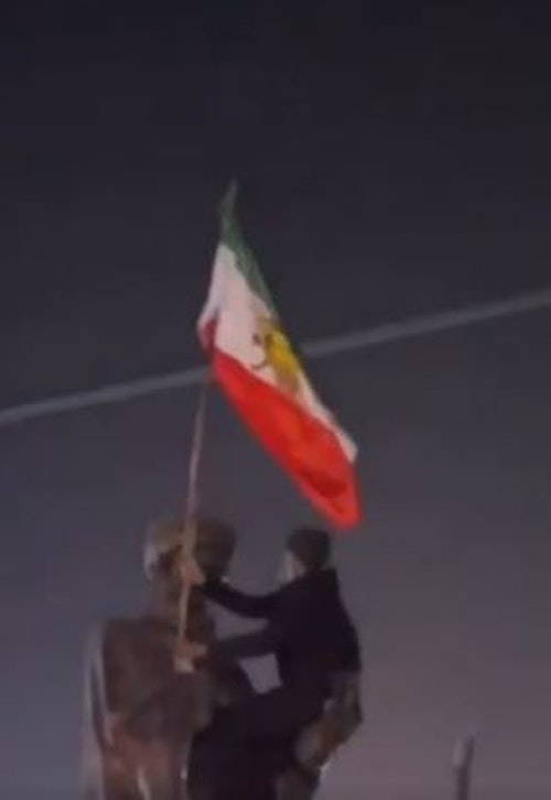 ویدئویی که در شبکههای اجتماعی پخش شده است برافراشتن پرچم ایران با نشان شیر و خورشید را در یکی از میادین شهر خرمآباد نشان میدهد.