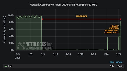 نتبلاکس که دسترسی جهانی به اینترنت را رصد میکند در تازهترین بهروز رسانی خود با استناد به برخی دادهها آورده است که پس از ۱۹ روز «خاموشی مطلق» و قطع کامل ارتباطات دیجیتال، بسیاری از شبکهها مجدداً در سطح بینالمللی قابل رویت شدهاند.