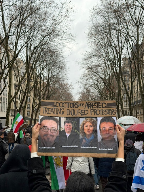 این پزشک ایرانی مقیم فرانسه درباره بازداشتیها گفت که دستکم ۳۳ نفر از کادر درمان، شامل پزشکان، دندانپزشکان، داروسازان، پرستاران و دانشجویان پزشکی، هنوز در بازداشت یا وضعیت بلاتکلیف به سر میبرند. آنها عبارتند از: دکتر علیاصغر شاکری، پزشک عمومی، مشهد؛ دکتر فریبا حسینی، دندانپزشک، شیراز؛ دکتر آمنه سلیمانی، پزشک عمومی، اردبیل؛ دکتر محمدعرفان فربد، متخصص داخلی، تهران؛ دکتر صابر دهقان، جراح اعصاب، سیرجان؛ دکتر بابک پور امین، متخصص طب اورژانس، نیشابور؛ دکتر گلنار نراقی، متخصص طب اورژانس، رباط کریم؛ دکتر علیرضا رضایی، اورولوژیست، تهران؛ دکتر حسین (بابک) ضرابیان، متخصص عفونی، اصفهان؛ دو پزشک در کرمان؛ پزشک، نامشخص؛ پزشک مرد، اصفهان؛ س.چ، پزشک زن، کاشان؛ سعید جوانبخت، دانشجوی پزشکی، یاسوج.