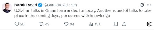 باراک راوید، خبرنگار اکسیوس در صفحه خود در شبکه اجتماعی ایکس نوشت که «یک دور دیگر از مذاکرات در روزهای آینده انجام خواهد شد.»
