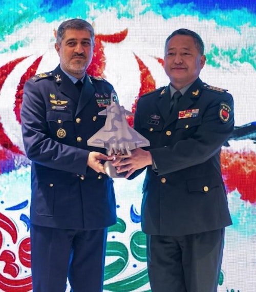 وابسته نظامی چین در تهران ماکت جنگنده «جی ۲۰» را به فرمانده نیروی هوایی اهدا کرد