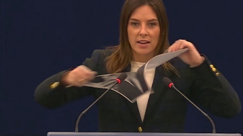 پاره کردن تصویر خامنهای در صحن پارلمان اروپا