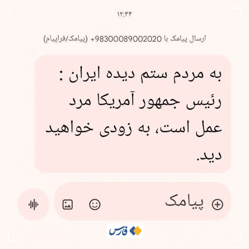 در این پیامک آمده بود: «به مردم ستمدیده ایران: رئیسجمهور آمریکا مرد عمل است. به زودی خواهید دید.»