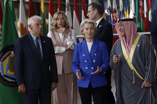 جورجا ملونی، نخست وزیر ایتالیا در نشست شورای همکاری اتحادیه اروپا و خلیج فارس در بروکسل، بلژیک، چهارشنبه، ۱۶ اکتبر ۲۰۲۴، AP