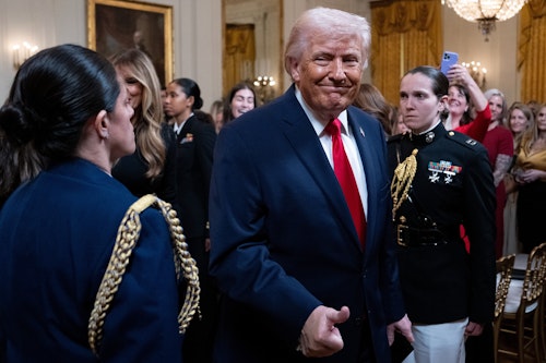 ترامپ هنگام سخنرانی در مراسمی در کاخ سفید به مناسبت ماه تاریخ زنان به این جنگ اشاره کرد و گفت: «جنگ در ایران، خیلی خوب پیش میرود.»