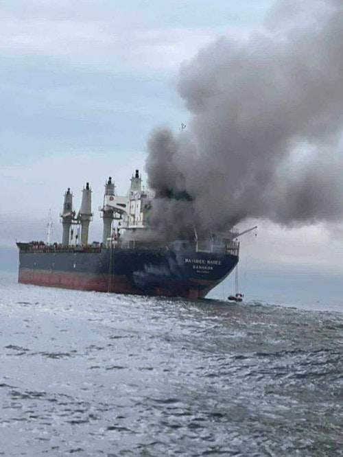 این کشتی که با پرچم تایلند تردد میکند، در پی این حملات دچار آسیب شده است.